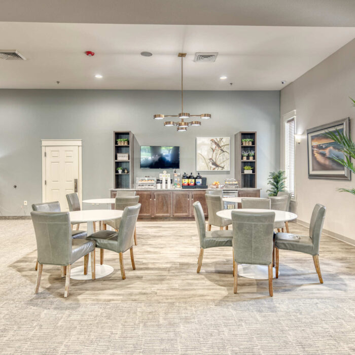 All residents enjoy the dedicated movie theater with the big lounge chairs and popcorn machine. The game tables and activity rooms are popular, and our gym and salon keep everyone looking and feeling their best.
